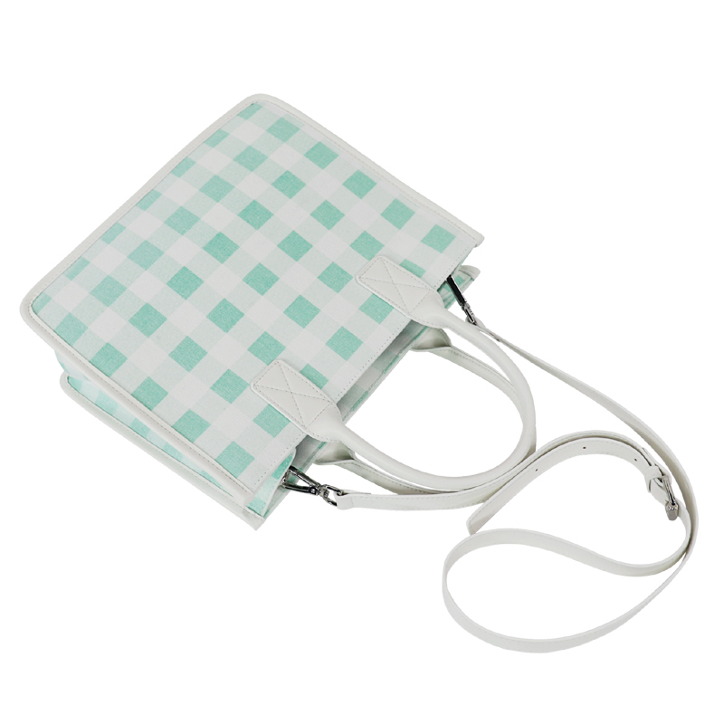 森系上班小拎包 帆布網(wǎng)紅小紅書(shū)小方包 韓國(guó)綠格子小眾手拎單肩包