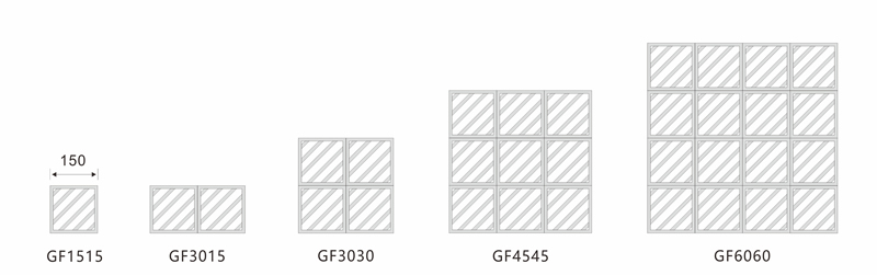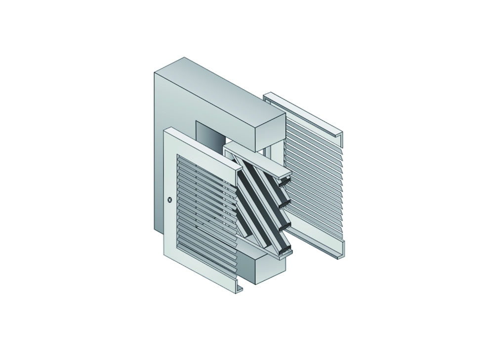 防火百葉尺寸:150mm*150mm 為最小單元,可橫向或 豎向組合,厚度為40mm